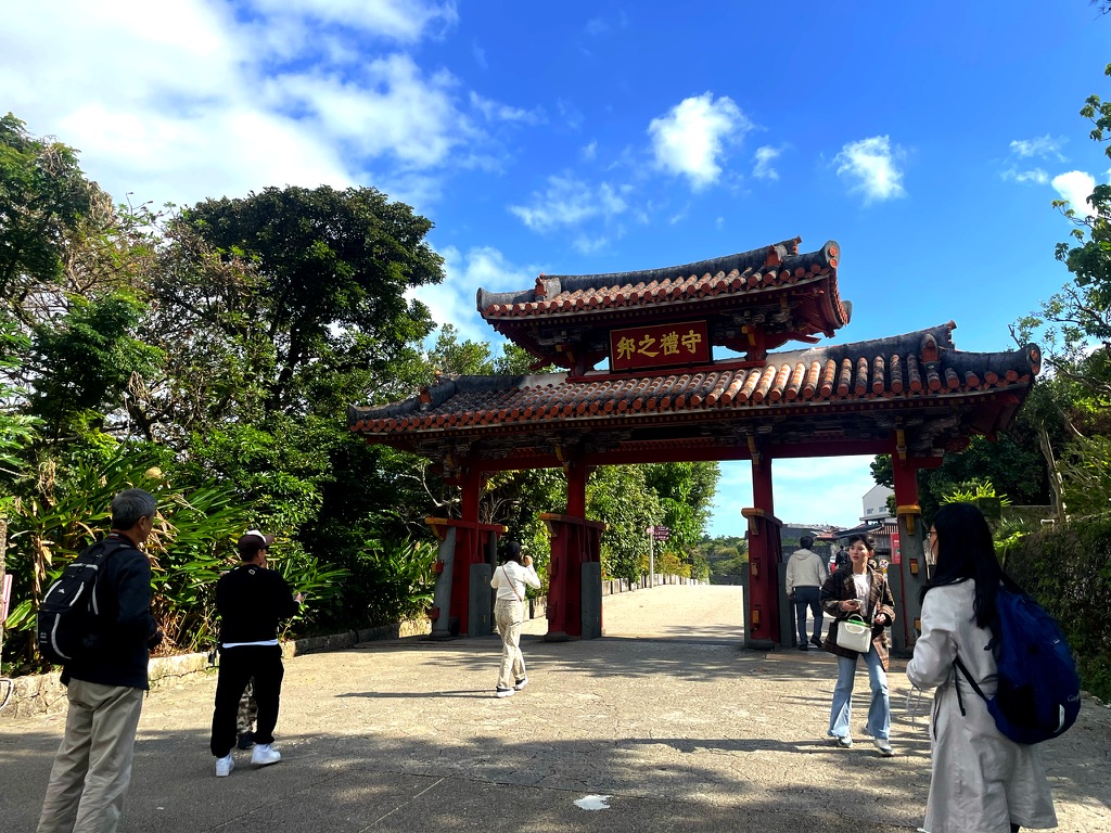会議終了後、復路便までの短い時間を利用して、修復中の首里城を見学👀。現在は工事のため完全に建屋に収納されていますが、姫路城修復時のように見学ルートが整備されており、非常に興味深いものでした。鉄鋼研究者としては、首里城の独特な赤色酸化鉄顔料「弁柄」にも注目❣️